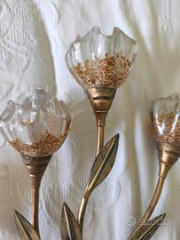 Applique Vintage Antea Luce - Bouquet di Fiori in Vetro di Murano e Oro