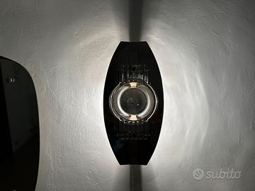 Pezzo autentico in vetro di murano pressato e metallo cromato, trasformato artigianalmente in applique da parete. Luce molto scenografica una volta accesa.