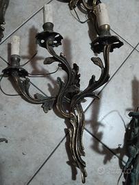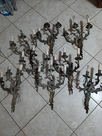 Vendo 8 applique vintage stile Barocco /rococò a 3 luci,in bronzo dorato,7 sono complete e 1 ci manca la candela.Proveninza arredo ecclesiastico,da pulire e controllare impianto elettrico vendo tutto insieme 1.500€ o coppia 300€ Trattabile
