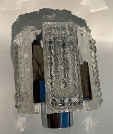 Applique singola vintage anni '70 Kaiser Leuchten metallo e vetro stampato. Una piccola sbeccatura all'interno di un vetro, non viìsibile da montata. Circa 20 cm x 20 cm.