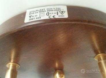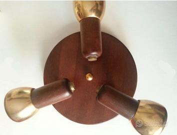 LAMPADA VINTAGE APPLIQUE A SOFFITTO "STILPLAST" A TRE FARETTI E14 - R50 max 40 Watt, SNODABILI E REGOLABILI IN TUTTE LE DIREZIONI. BASE IN LEGNO MASSELLO E PORTALAMPADA IN OTTONE. OGGETTO VINTAGE ANNI 80. PERFETTO STATO COME NUOVO. si vende senza faretti da acquistare a parte.