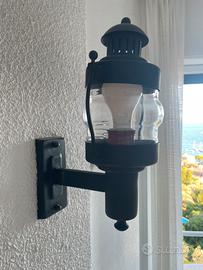 Gruppo di quattro appliques nere opache. Ora ambientate in una casa al mare. Belle sia da interno che da esterno . Altezza cm 35 diametro massimo cm 12. La placca a muro misura cm 15x 7. Vendo la coppia a 80€, tutte e quattro a 148€. #appliques #lampadeamuro