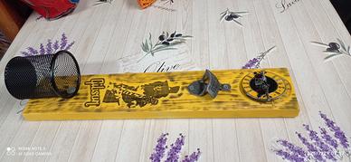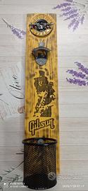 Bellissimo.apribottiglie in legno, interamente artigianale, unico esemplare, con fibbia metallica logo Guns n Roses , Slash inciso al laser , colorato a fuoco e verniciato.