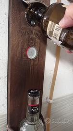 Bellissimo apribottiglie da parete artigianale, con logo Jack Daniels Skull Harley Davidson, in legno con calamita per non far cadere il tappo.