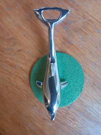 Apribottiglie vintage in acciaio argento a forma di delfino