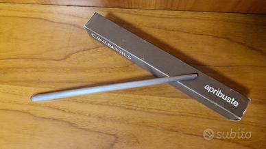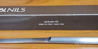 Apribuste in acciaio inox spazzolato e lucido, fa parte della "Collezione Cilindrica" di Cini & Nils, progettato da Franco Bettonica e Studio OPI per Cini & Nils alla fine degli anni '60.
