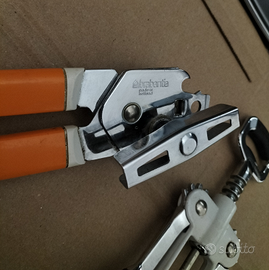 coppia utensili da cucina vintage di buona fattura apri scatole come conserva di pomodoro legumi frutta in scatola e molto altro ancora brabantia made in holland e apri bottiglie Pedrini made in italy