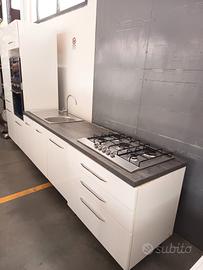 3,60 MT lineari. forno, forno a microonde, lavastoviglie, lavabo, piano cottura 5 fuochi frigo incassato. possibilità trasporto e montaggio zona Prato Firenze con 150 € in più. adattamento in base all'ambiente da arredare. colore bianco lucido e tortora scuro lucido nella parte dei pensili. elettrodomestici Smeg e whirpool. astenersi perditempo, affaristi e indecisi.