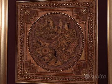 Arazzo di provenienza tailandese Interamente realizzato a mano, con cornice. Misure 91x91