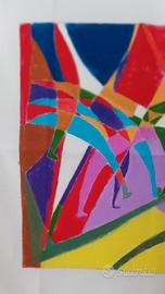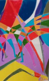 Arazzo "GROVIGLIO DI GAMBE" in cotone 100%, l'intreccio dei colori creato dal disegno geometrico di gambe accavallate, rende l'ambiente vivace, moderno e luminoso.
