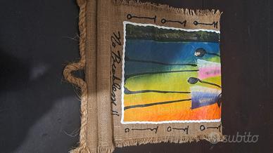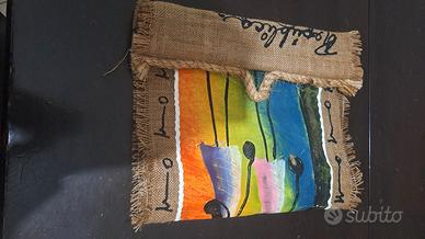 Dipinto Souvenir repubblica Dominicana tessuto juta con colori vivaci oggetto esclusivamente vintage condizioni buone