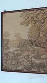 Incantevole Arazzo Gobelin, lavorato senza nodi - raffigurazione paesaggio romantico elegante con cornice cm 200x 70cm. senza vetro . -