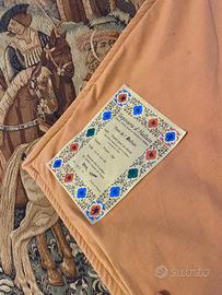 Arazzo di pregiata produzione francese, Tapisserie d’Halluin. Soggetto medievale “Partenza per la caccia”, preso dal soggetto originale presente al museo di Cluny. Materiale: lana e cotone.