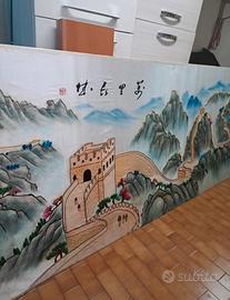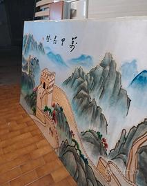Rappresenta la Grande Muraglia Cinese con un panorama, montagne e rilievi