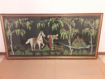 Vendo importante Arazzo ricamato a mano dentro una altrettanta importante cornice marrone dorata, misure 183x87.