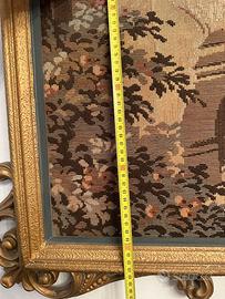 Il tessuto mostra una lavorazione fine, tipica degli arazzi realizzati con tecnica jacquard.