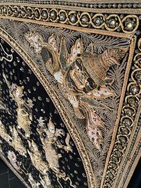 Arazzo Thailandese in stoffa con ricami dorati in rilievo, perline e pietre incastonate, Acquistato in Thailandia, artigianato locale , fatto a mano.