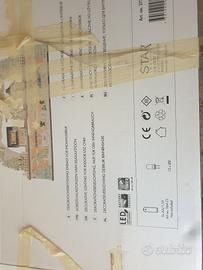 Bellissimo arco natalizio con Illuminazione 12 led. Rappresenta un bellissimo villaggio e bosco Natalizio. Prodotto in legno con luci bianco caldo, color crema e verde. Made in Sweden. Misure: Larghezza 45 cm, altezza 33 cm, profondità 8,5 cm. Piccoli segni marroni nel retro da fabbrica. Prodotto dalla famosissima casa svedese Star Trading. Scatola originale presente ma non integra (vedi foto). Esposto 1 volta.