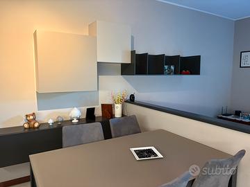 Vendo per cambio abitazione area leaving in laccato melaminico grigio composta da 4 elementi: 3 pensili da parete in laccato melaminico grigio in tre tonalita, completa la parete un pensile libreria.