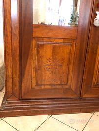 Argentiera 2 porte in legno massiccio con ripiani in vetro e ripiano in legno all interno, ante in vetro nella parte superiore e pannello intagliato nella parte inferiore, vetri laterali.