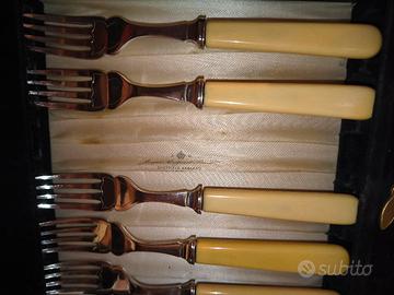 vendo causa inutilizzo set di posate per pesce in argento placcato e manico in osso originali anni 30, Inghilterra.