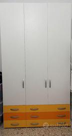 2 armadi per camera da letto bambini marca Moretti, di cui un armadio a tre cassetti esterni e tre ante battenti con all’interno due mensole ed un appendiabiti (h.258, larg.145, prof.60) ed un armadio a tre cassetti esterni, due ante battenti e cinque mensole esterne, con all’interno due mensole ed un appendiabiti (h.258, larg.98 dell’armadio e 58 delle mensole esterne, prof.60). Ottimo stato, i mobili si trovano a Genova, ritiro a carico dell’acquirente. E’ possibile acquistare anche un singolo armadio tra i due proposti. Prezzo richiesto €500