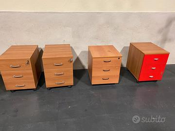 - CASSETTIERE A RE CASSETTI E RUOTE COLOR NOCE E ROSSO CM. 40X50 EURO 60,00/CAD.