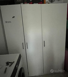 Vendo due armadi e due comodini (anche separatamente). In ottime condizioni i comodini e l'armadio bianco/marrone, in buone condizioni l'armadio bianco. Misure: - comodini 45X42 cm - armadio ciliegio/bianco 200x120x30 - armadio bianco 180x145x52