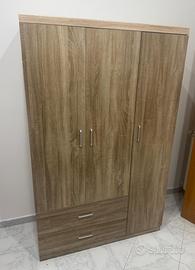 • Descrizione: Armadio in legno melaminico Sp. 15mm, bordato in ABS da 1mm. Dotato di due ante con cerniere ammortizzate e due capienti cassetti con guide in metallo. Maniglie e tubolare appendiabiti interno in alluminio.