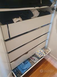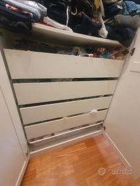 Bianco, ottime condizioni, dotato di 4 ampi cassetti per lato+vano appendiabiti e ripiani, completo di luci lato superiore.