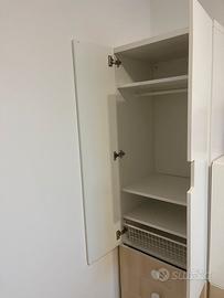 - armadio grande: 3 cassetti, mensole interne, tubo appendiabiti e cesta estraibile (misure: 60x193x51,5cm)