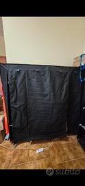 Coppia di armadi in tessuto con ripiani e cerniere. Utilizzati pochissimo