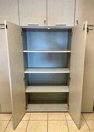 Vendo armadi e mobili d'ufficio per cambio arredamento. Foto 1: armadio a 14 ante L.3,15mt x H.2,43mt x P.0,48mt Foto 2: interno armadio Foto 3: armadio a 4 ante L.1,80mt x H.1,63mt x P.0,45mt Disponibilità al trattamento del prezzo.