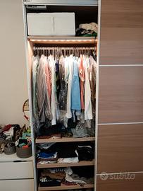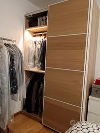 Vendo, anche separatamente, 2 armadi Pax IKEA, ciascuno 150x240x60,ante scorrevoli, colore noce con rifiniture bianche.