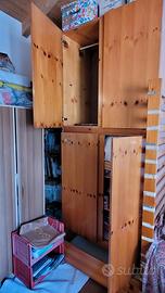 A 20 euro l'uno vendo due armadi sovrapponibili o affiancabili. Quello sotto: largo 110, alto 160, profondo 63, con cassettone. Quello sopra: largo 110, alto 113, profondo 63. Sovrapposti hanno un'altezza complessiva di 273 cm. Autocostruiti, quindi imperfetti. Vecchi, molto usati ma ben messi. NON sono di legno massiccio ma di truciolato impellicciato pino. Solo per ritiro al mio domicilio (sono da smontare)