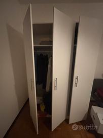 Vendo due armadi da 2 ante insieme diventano 4 e uno con tre ante tutte insieme prezzo 120 euro