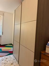 Vendo 3 armadi dello stesso colore olmo bianco altezza 255 cm e profondità 61cm: 3 ante battenti 3 ante scorrevoli 2 ante scorrevoli Con ripani interni, cassetti e barre porta abiti. Smontaggio e ritiro di persona in zona Pagano a Milano Vendita in blocco di 3 armadi o separatamente
