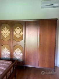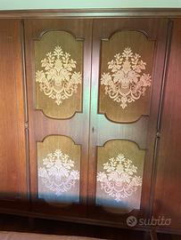 Armadiatura armadio camera da letto lussuoso a 6 ante e con cassetti in legno e con dettagli in velluto. Legno laccato all’interno