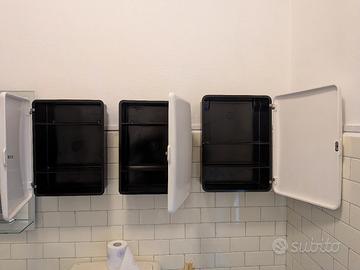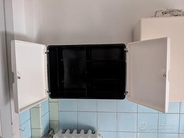 Armadietti in bachelite Sulle prime 2 foto: 3 armadietti singola porta. 2 della misura 31*43*14 (Larghezza * Altezza * Profondità), prezzo € 50 cadauno 1 leggermente più grande, misura 33*45*14 (Larghezza * Altezza * Profondità), prezzo € 60 Sulle foto 3 e 4: armadietto doppia porta. Misura 52*37*17 (Larghezza * Altezza * Profondità), prezzo € 70 Tutto insieme € 200 Sulle foto 5 e 6: marchi e modelli Non spedisco, ritiro a mano Torino zona San Donato oppure Vinovo