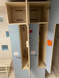 Armadietto a 4 posti a L, con possibilità di chiuderlo con chiave o lucchetto o codice.