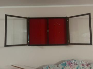 Armadietto molto capiente come da foto per custodire pezzi da collezione ( coltelli.. pugnali ) in legno anticato . Misure: 70 x 97 x 8.