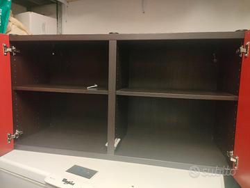 Per cambio arredamento vendo solido armadietto con finiture legno marrone scuro e porte rosso lucido. Perfette condizioni. Misure L120xH65xP42 Solo ritiro a mano