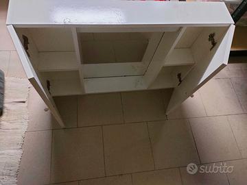 Propongo armadietto a due ante con specchio, in legno bianco. Misura 90X64X15. L' oggetto è in ottime condizioni. Sono a disposizione per ulteriori foto.