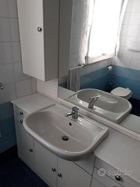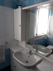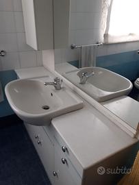Armaditto per bagno - base larghezza cm 142 prof 35; armadietto h 70x25 completo di lavabo Ideal Standard, miscelatore, piletta, sifone, specchio cm 105xh115, faretti, presa 220, marmo bianco 37x142cristallino - volendo disponibilità a montaggipo e collegamento idraulico.