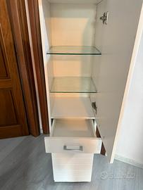 Come da titolo vendo armadietto, colore bianco, con vari ripiani in vetro e cassetto altezza 1.50 larghezza 35cm