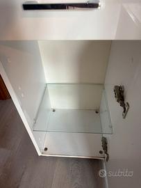 Armadietto bianco con ripiani in vetro
