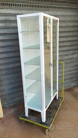 Armadietto farmaci due ante in vetro con serratura. In perfette condizioni. Struttura in metallo con 5 ripiani in vetro. H168 L75 P38