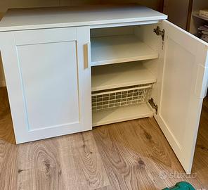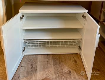 Mobile bianco Ikea con 2 ripiani e un cassetto in basso, 80x63x43. Come nuovo salvo qualche piccolo graffietto dentro.
