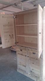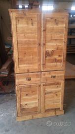 Armadietto in legno vecchio di antichi solai e parancole recuperati levigate leggermente in modo che siano morbide al tatto mantenendo la pattina originale naturale che il tempo ha fatto con misure lungh. 100 prof. 50 h 200 composto con 4 ante costruite con telaio e pannello inserito internamente che si apriranno su cerniere da cucina regolabili e 2 ripiani parte superiore e 1 ripiano parte inferiore sempre aggiustabili con bussola inserita nel fianco. i 2 cassetti nella parte centrale scorreranno su guide in legno e internamente il cassetto sarà in abete massello unito a coda di rondine. si apriranno con pomelli come da foto. zoccolo sempre in pattina di legno vecchio, la finitura cerata naturale trasparente profumata. il prezzo si intende franco fabbrica con finitura e pomelli compreso di imballo iva non comprensiva. per domande o dubbi contattateci il mobile è già stato prodotto su commissione del cliente e non teniamo in magazzino dato che ogni mobile è costruito su misura e specifiche del cliente essendo i diretti produttori e falegnami. per noi conta dare vita al vostro sogno DIRETTAMENTE DAL PRODUTTORI FALEGNAMI. ASTENERSI RIVENDITORI E COMMERCIANTI