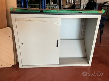 Come nuovo. La striscia che si vede è nastro adesivo. Ha un ripiano interno ed entrambe le ante scorrevoli e sovrapponibili